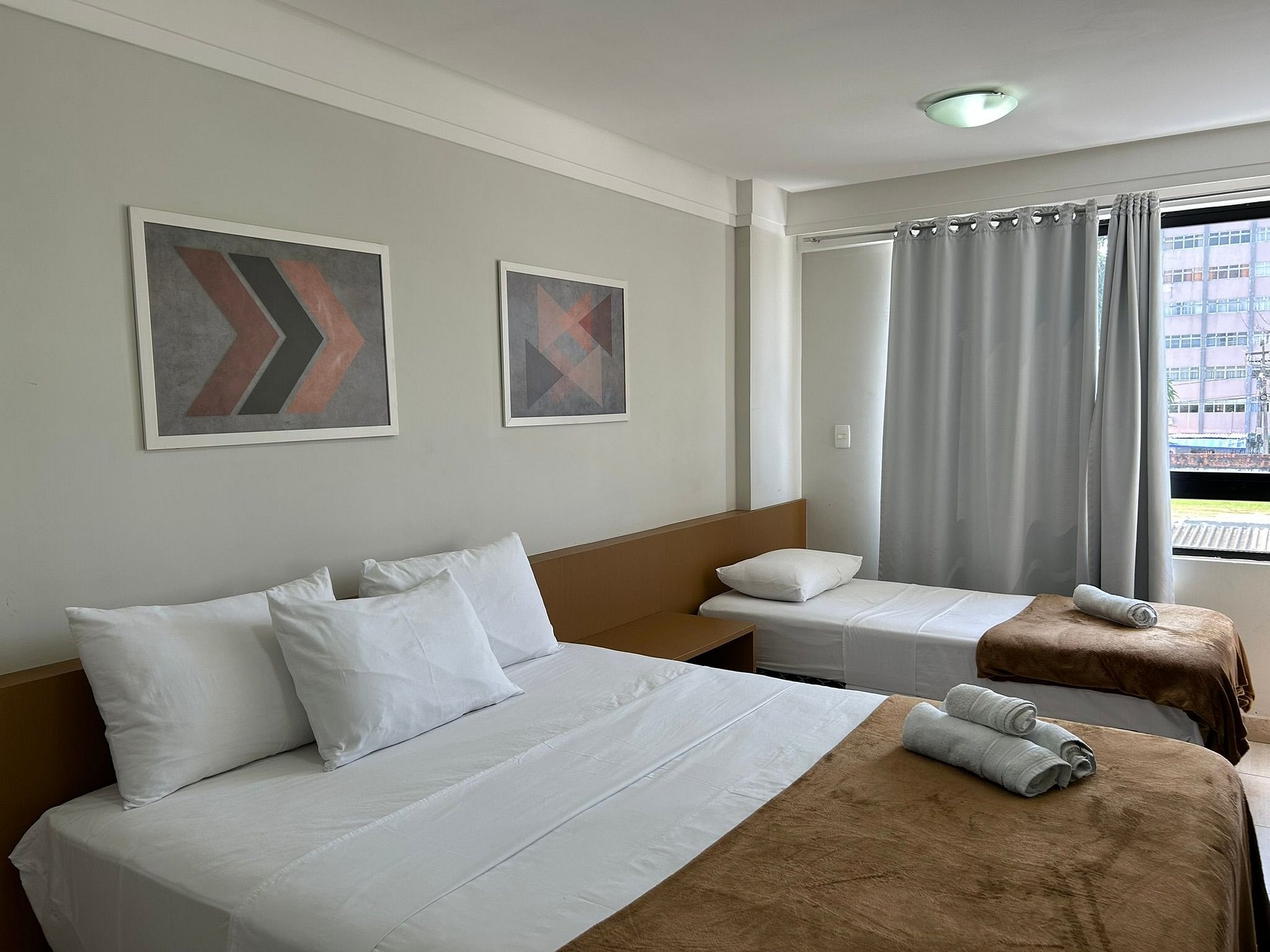 Os flats possuem de 25 a 32m e as acomodações comportam até 04 pessoas.