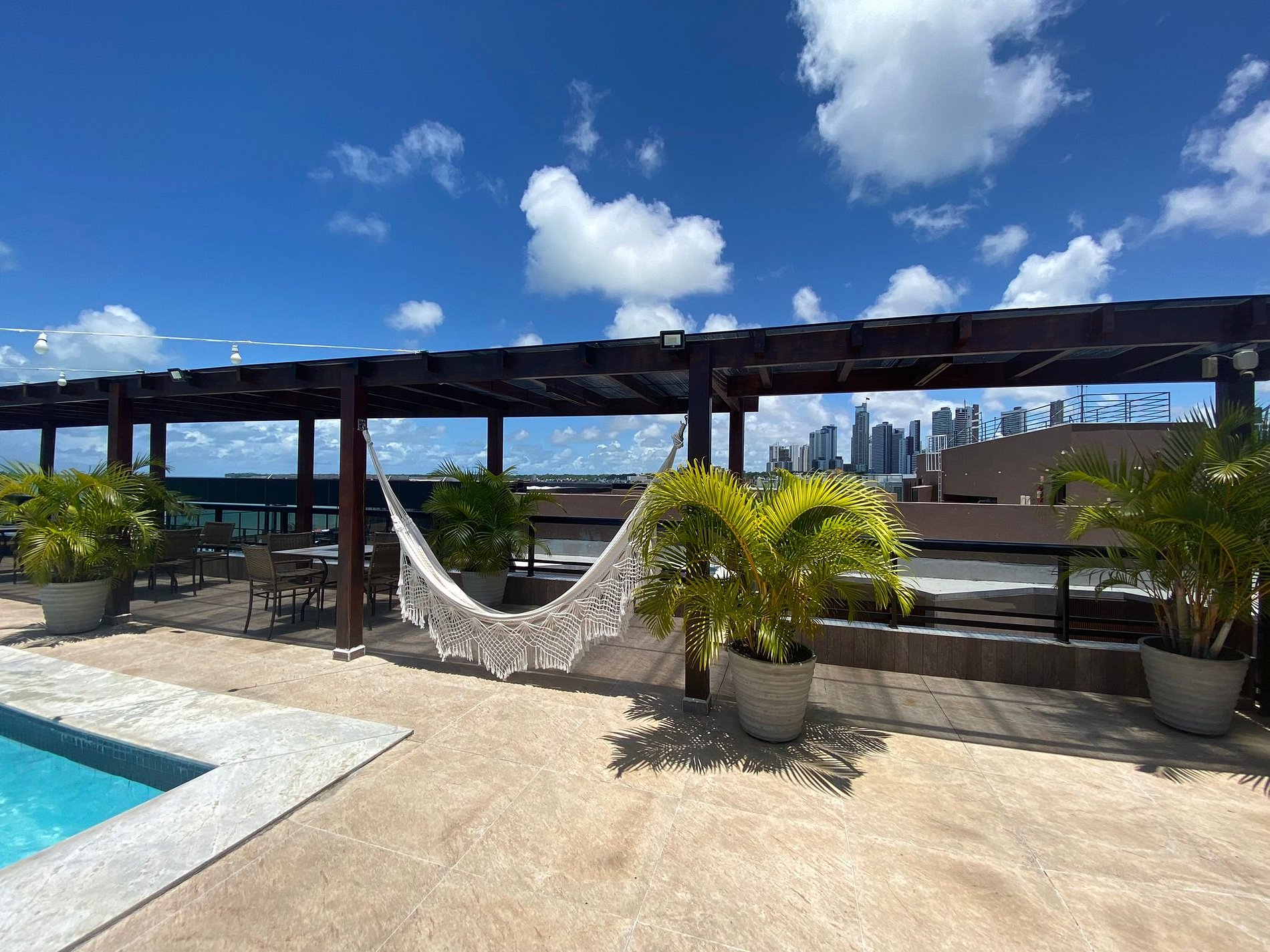 O prédio conta com área de lazer com piscina na cobertura.
