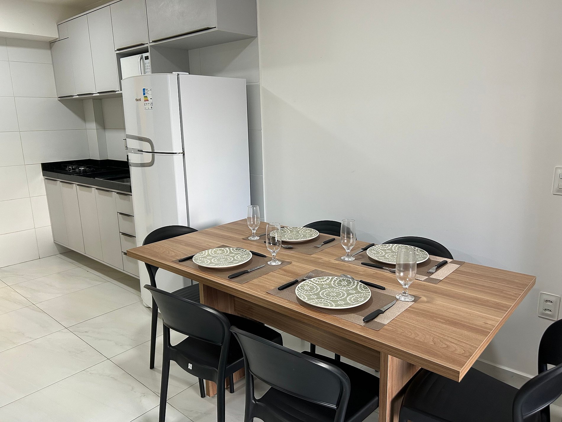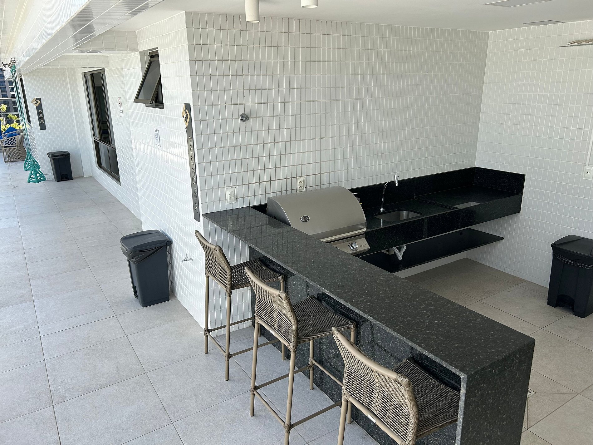 Em localização privilegiada a poucos passos da praia de Tambaú, o lindo flat tem cozinha compacta equipada com geladeira, microondas, sanduicheira, liquidificador, cooktop duas bocas, panelas , louças e talheres.