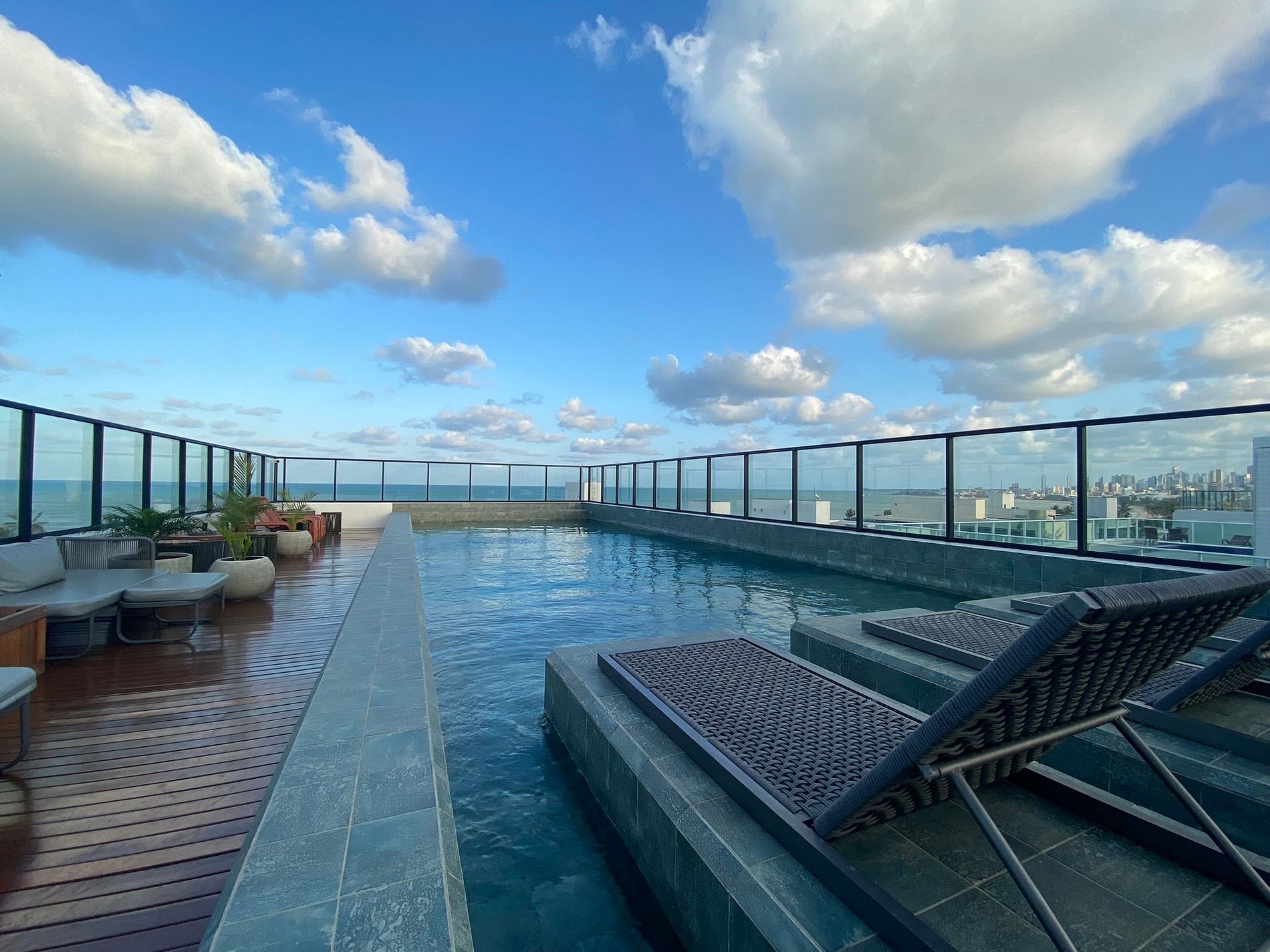 Piscina na cobertura do edifício, simplesmente perfeita para um mergulho ou para relaxar, curtindo a bela paisagem da praia do Bessa.