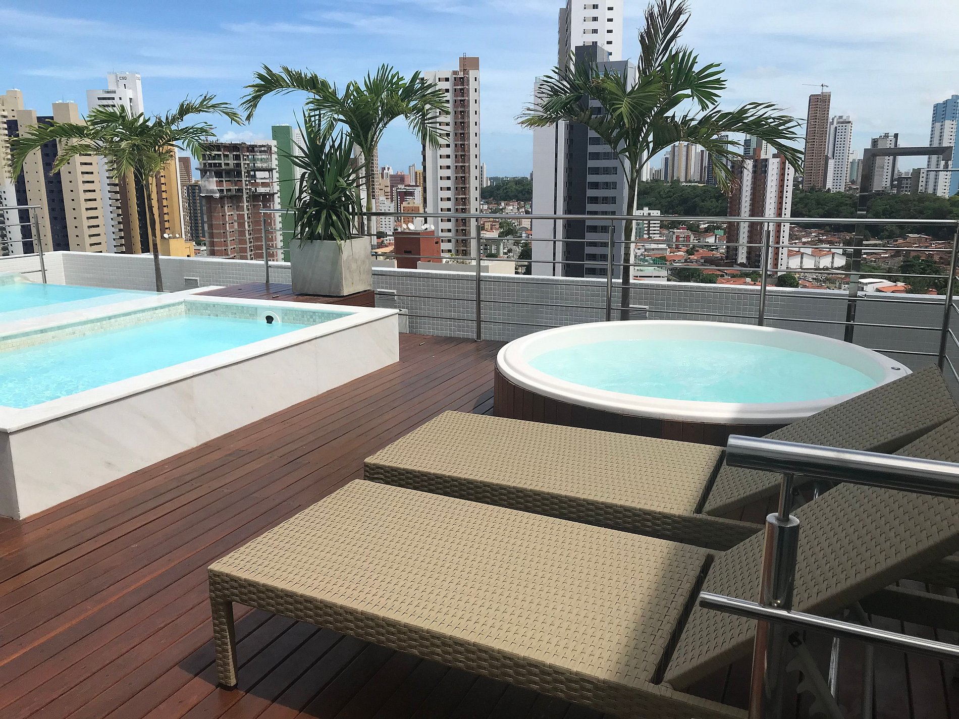 - Piscina com borda infinita e jacuzzi na cobertura - das 08 às 18h