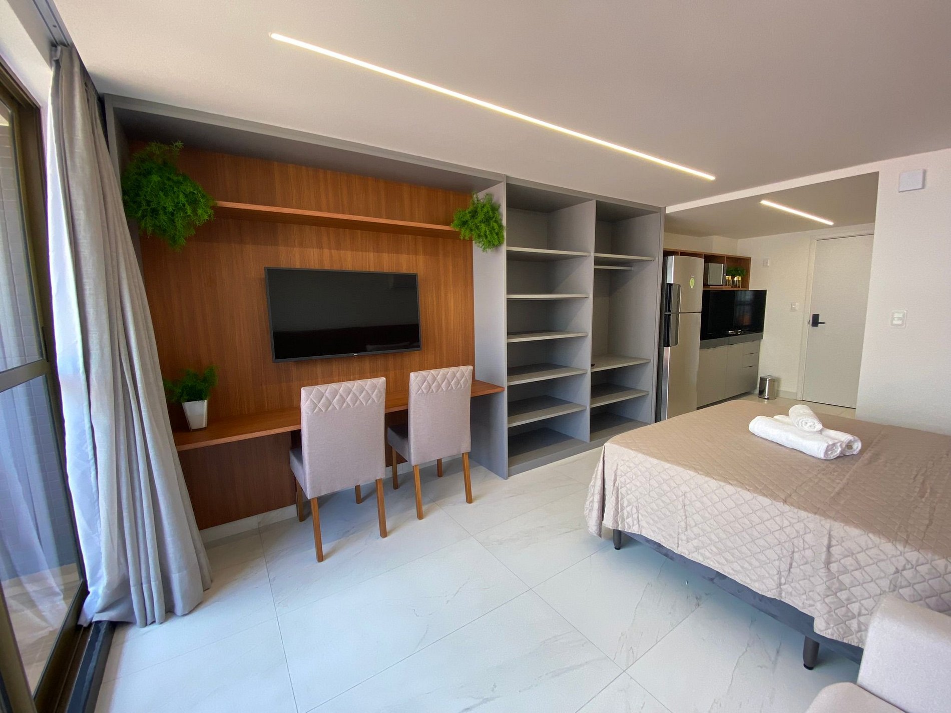 Está equipado com 01 cama queen+ 01 sofá cama, ar condicionado split , Smart TV de Led, roupas de cama e banho para garantir total conforto aos hóspedes.