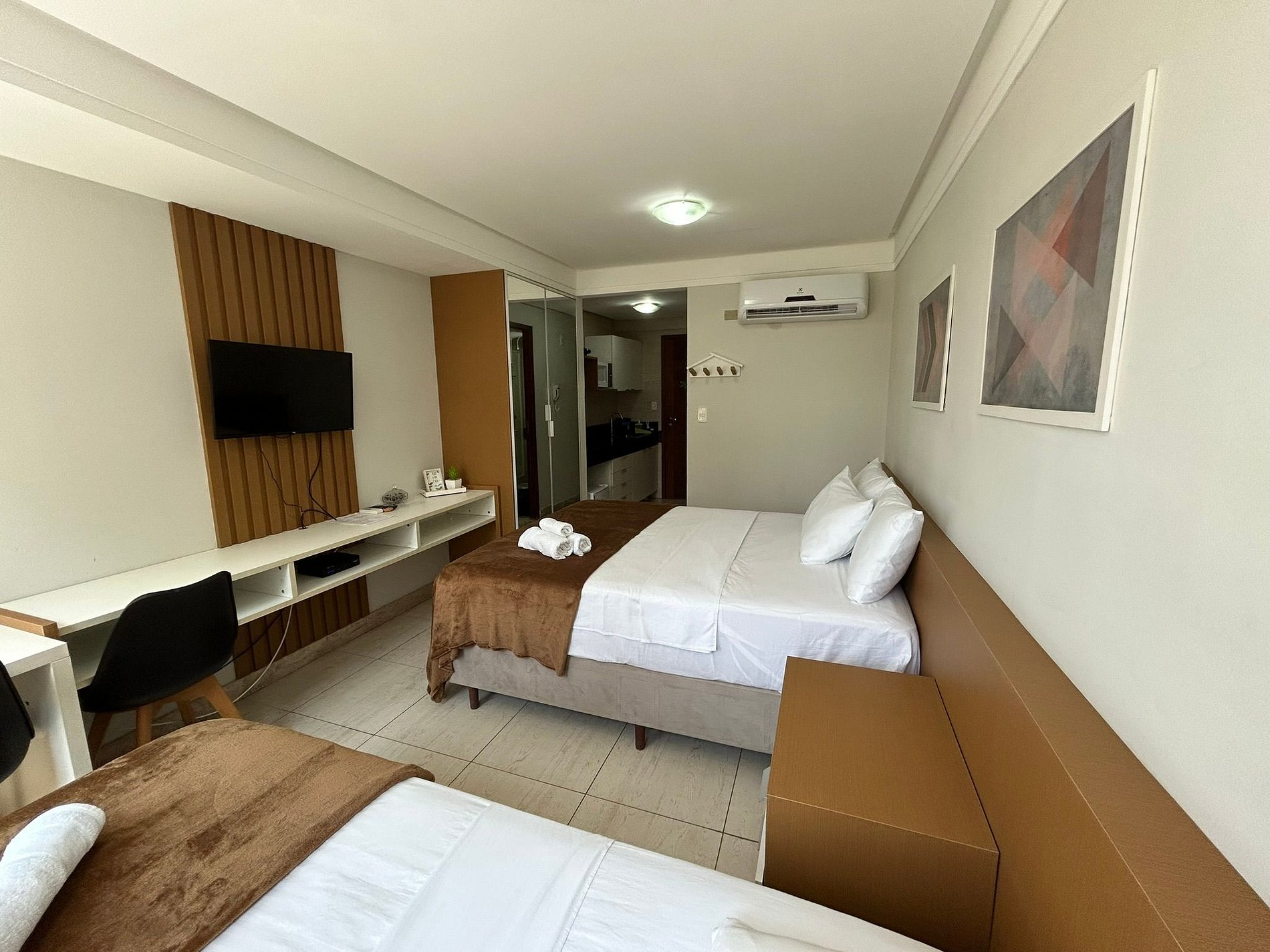 Os flats possuem de 25 a 32m e as acomodações comportam até 04 pessoas.