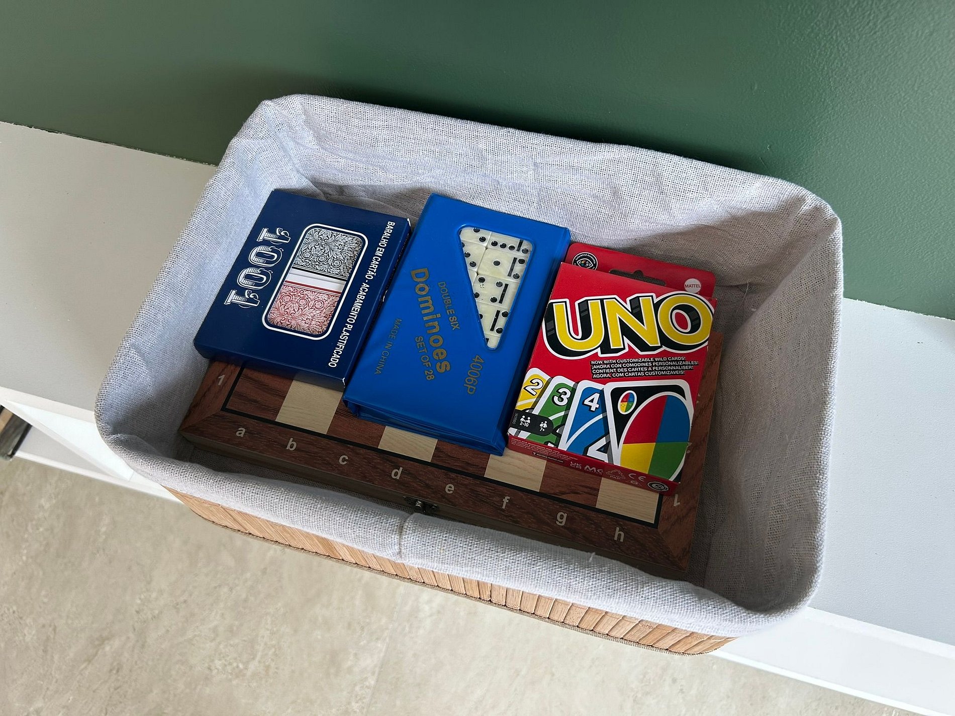 ● Disponível também um kit de jogos com baralho, UNO, dominó e tabuleiro (dama/xadrez), perfeito para momentos offline com amigos ou família.