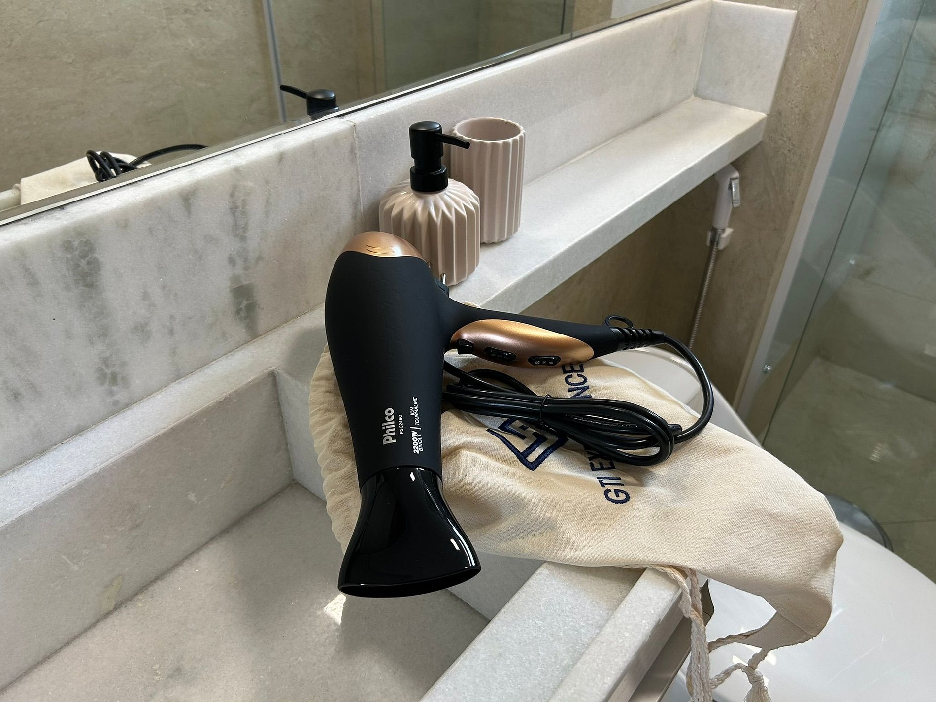 ● Banheiro com chuveiro elétrico, ducha higiênica, secador de cabelo e espelho