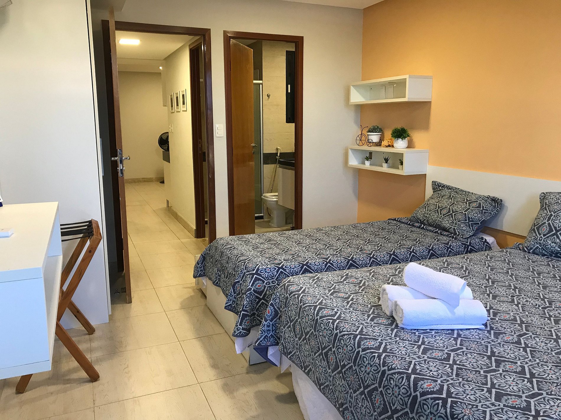 Limpeza no espaço com troca de enxoval é por agendamento com o atendimento da Bela Hospedagem.