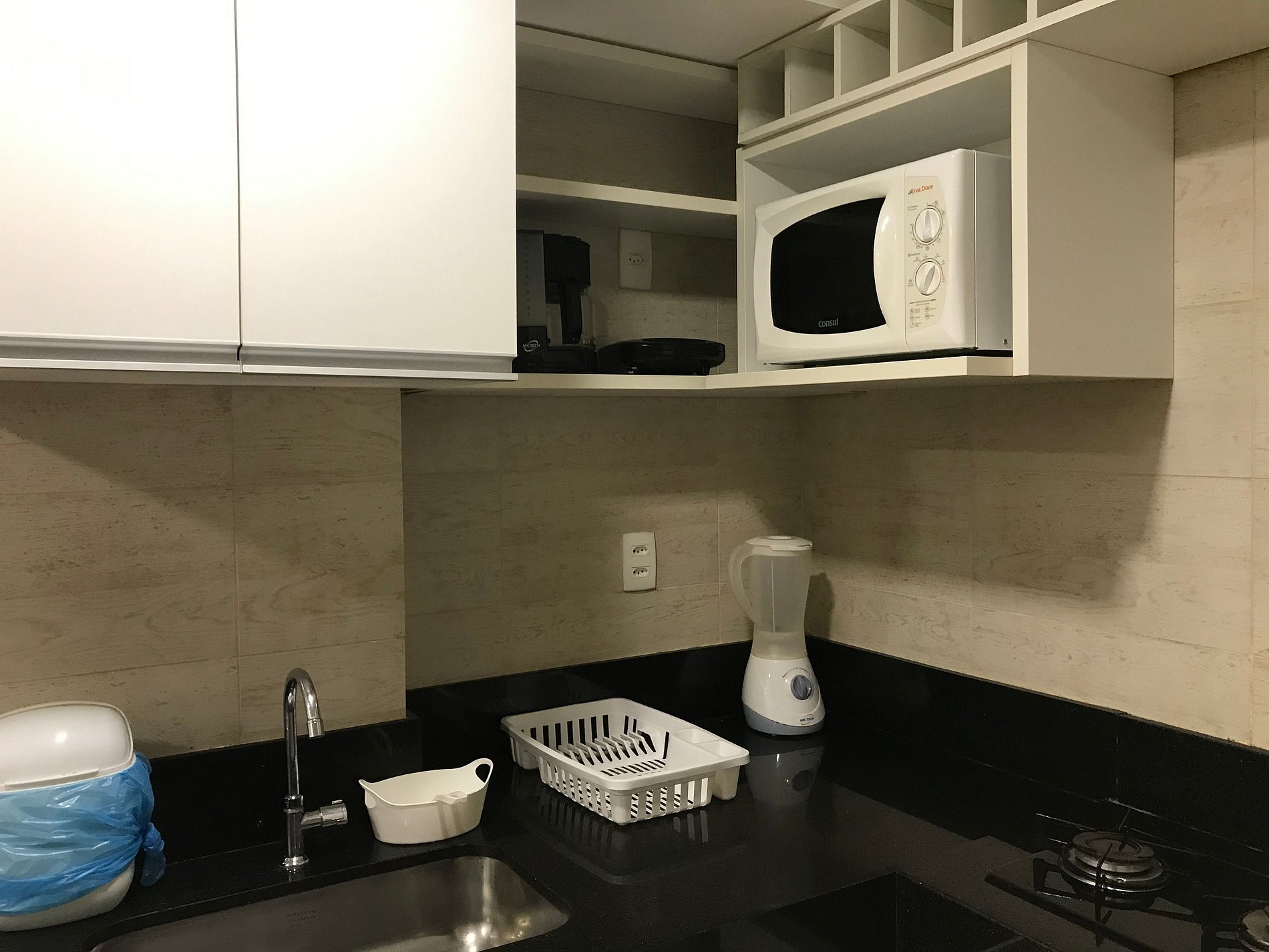 O flat é mobiliado, decorado e equipado com eletrodomésticos utensílios para preparo de refeições, além de dispor de enxoval completo de lençóis, toalhas e travesseiros para a sua entrada.