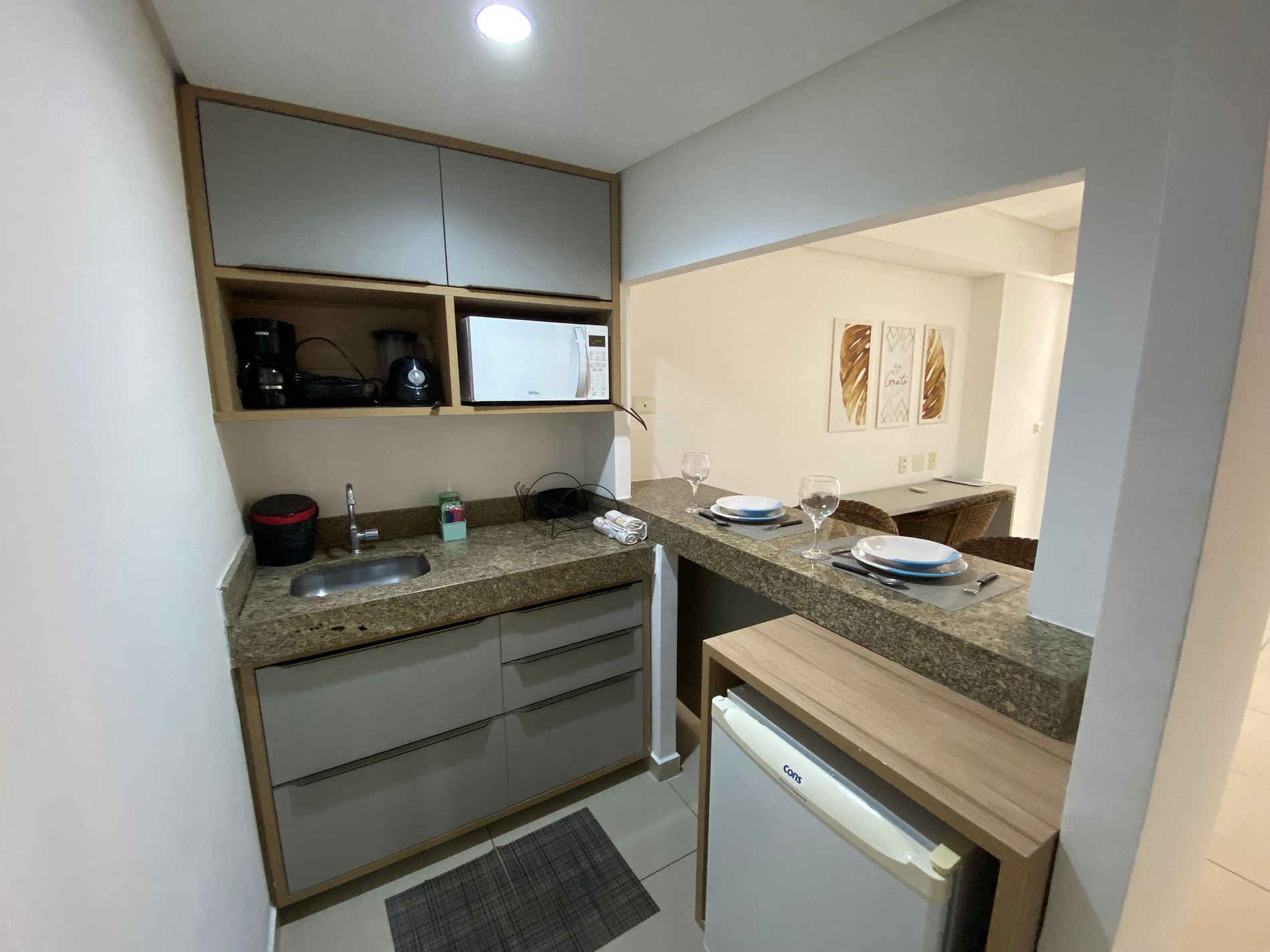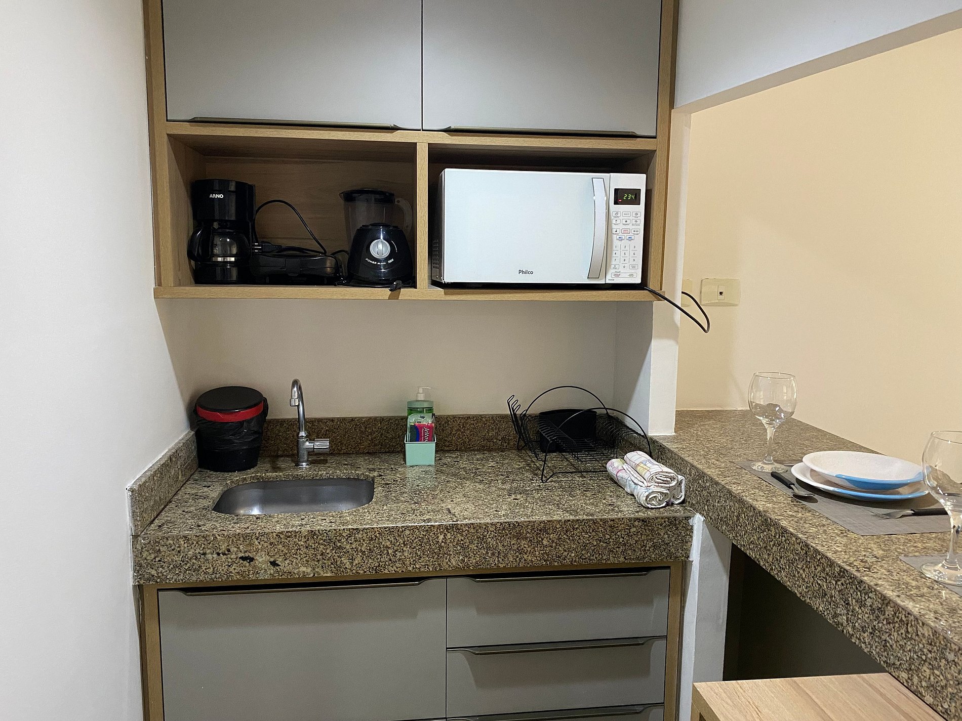O flat é mobiliado, decorado e equipado com eletrodomésticos utensílios para preparo de refeições, além de dispor de enxoval completo de lençóis, toalhas e travesseiros para a sua entrada.