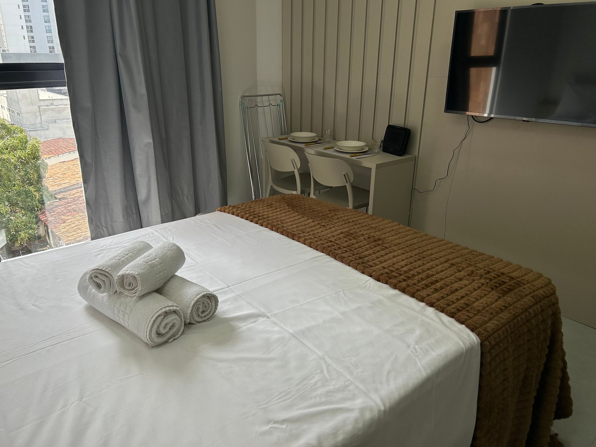 O flat oferece ambiente bem planejado, com ótima iluminação, climatização, Wi-Fi e tudo o que o hóspede precisa para uma estadia confortável, seja a lazer ou trabalho.