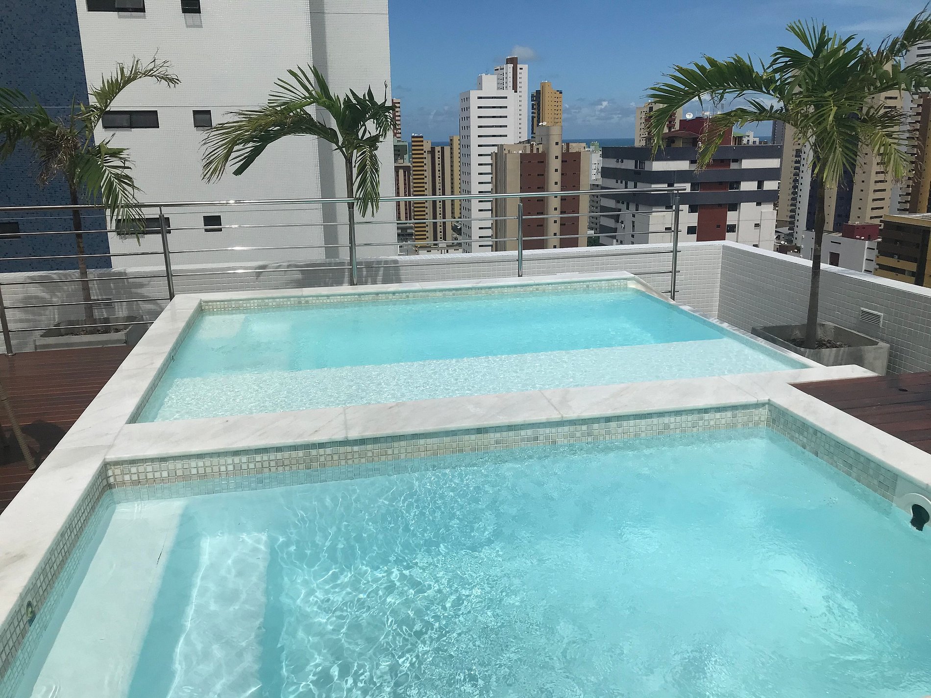 - Piscina com borda infinita e jacuzzi na cobertura - das 08 às 18h