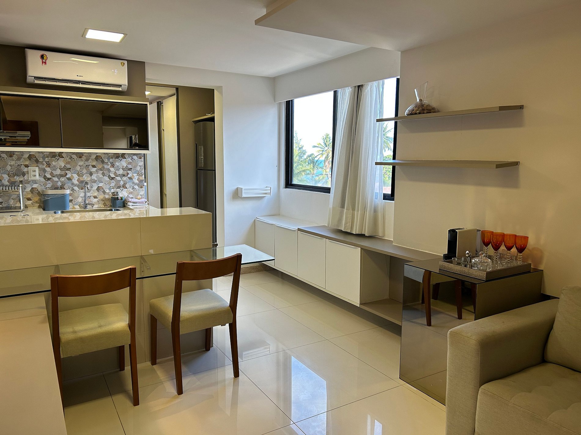 Ar condicionado split no quarto e na sala.