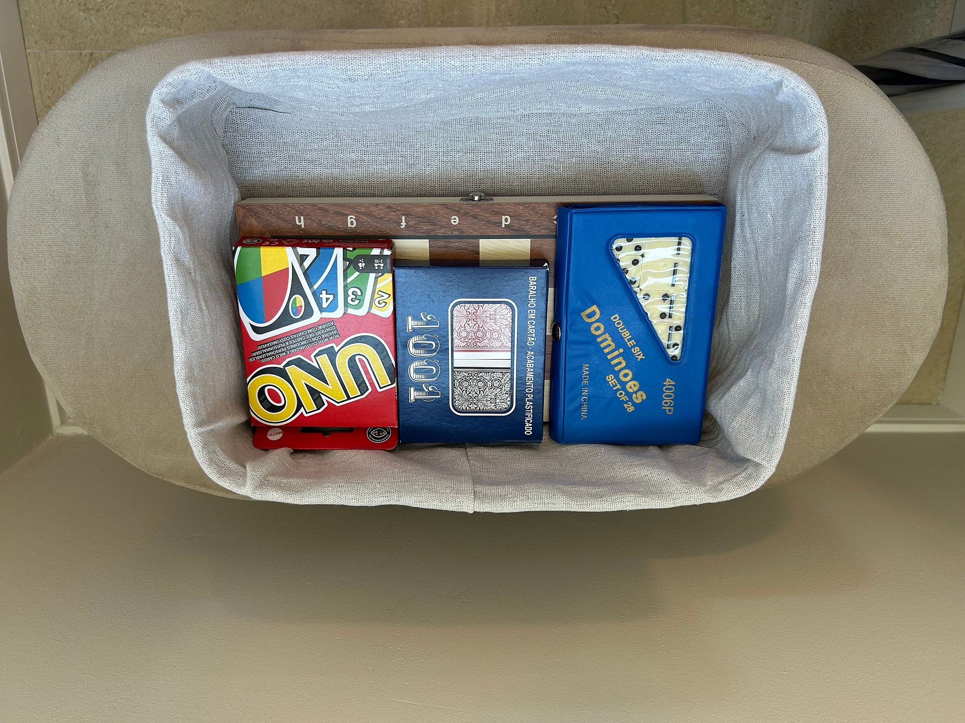 ● Disponível também um kit de jogos com baralho, UNO, dominó e tabuleiro (dama/xadrez), perfeito para momentos offline com amigos ou família.