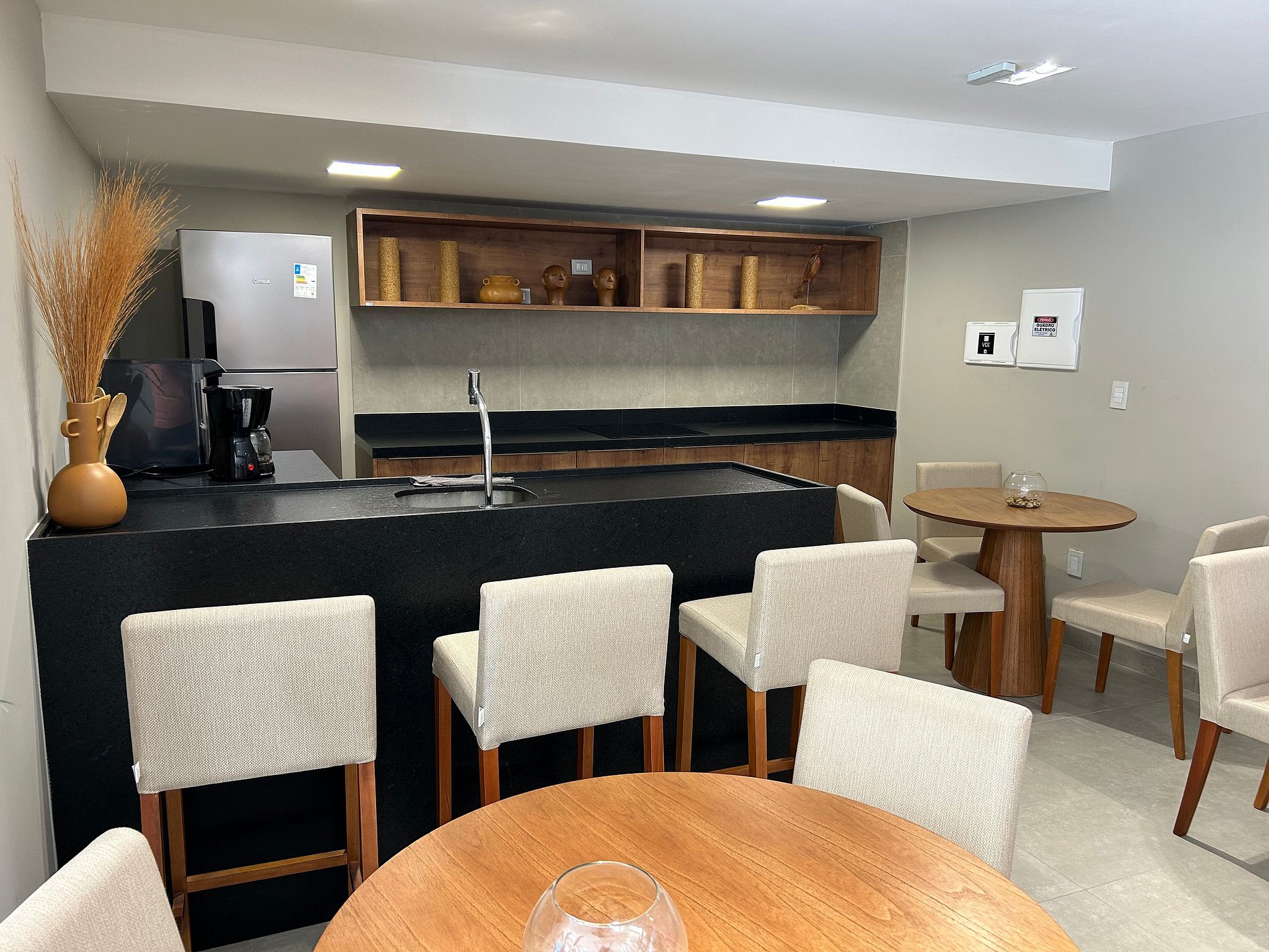 - Área gourmet compartilhada na recepção