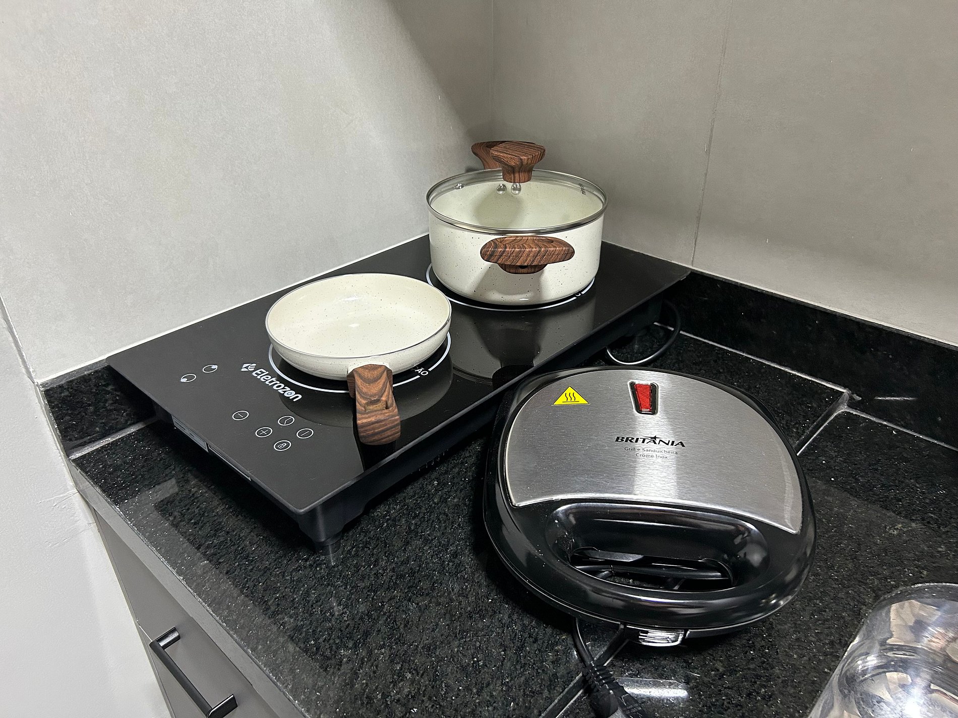 Em localização privilegiada, a poucos passos da praia de Cabo Branco, o lindo flat tem cozinha compacta equipada com geladeira, filtro de água, microondas, sanduicheira, cafeteira elétrica, cooktop de indução, liquidificador, panelas , louças e talheres.