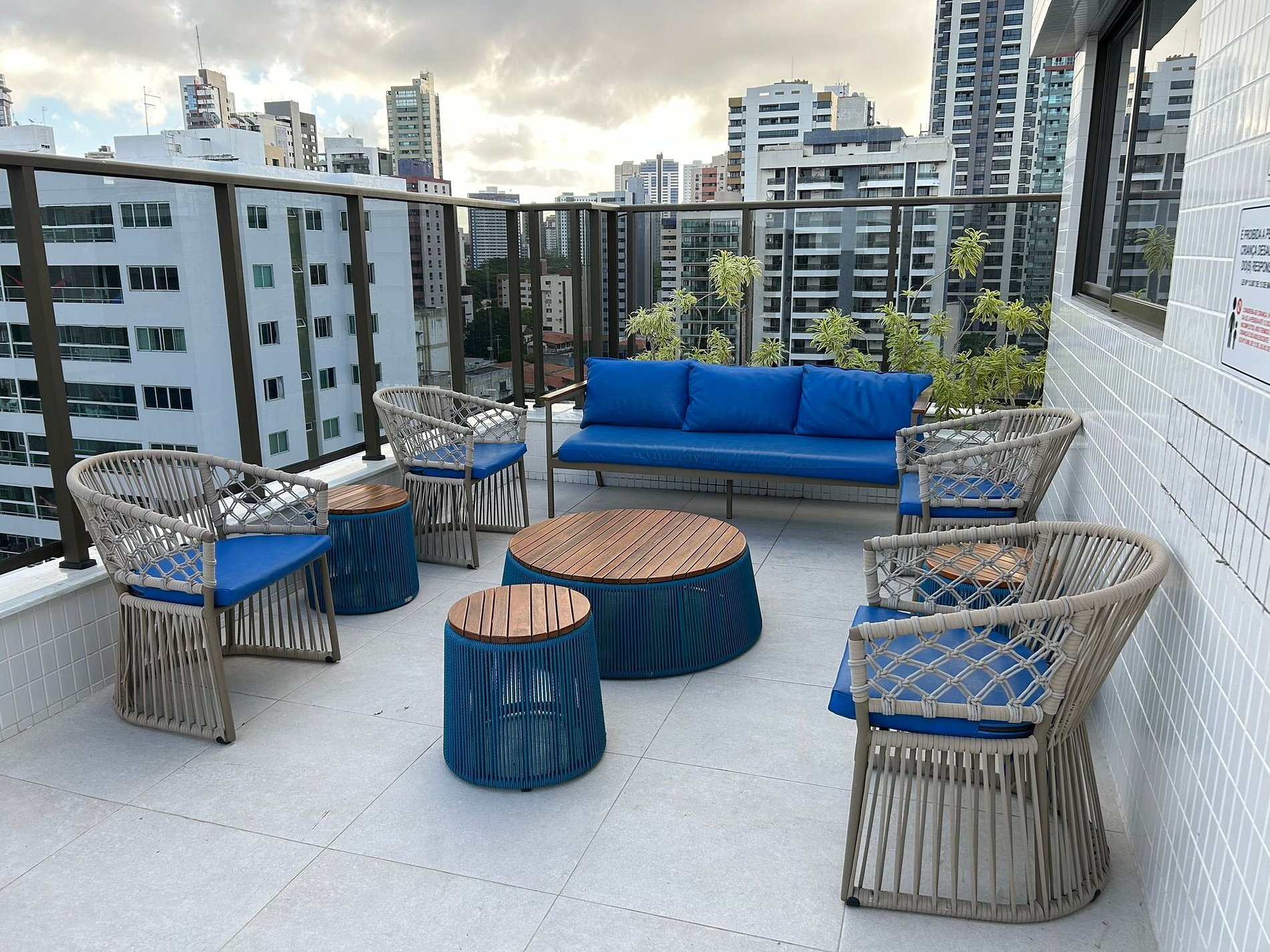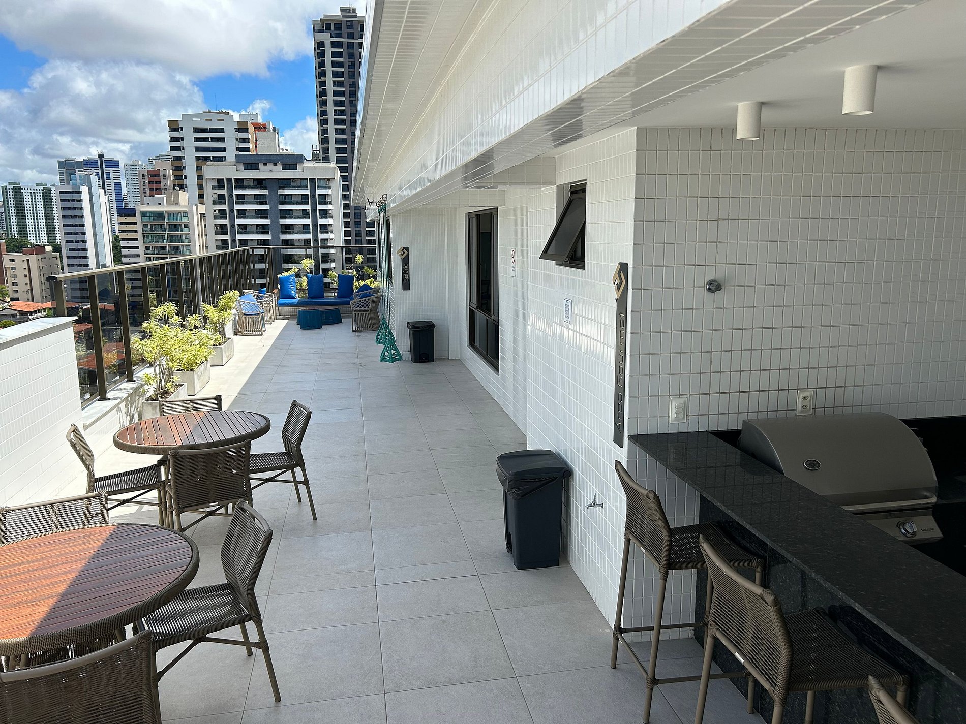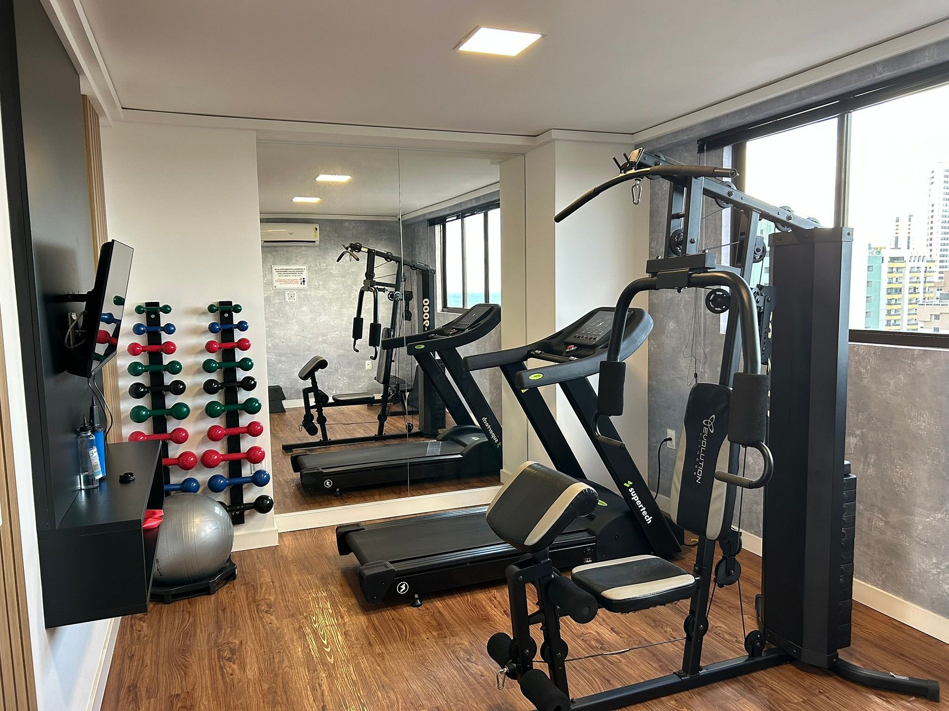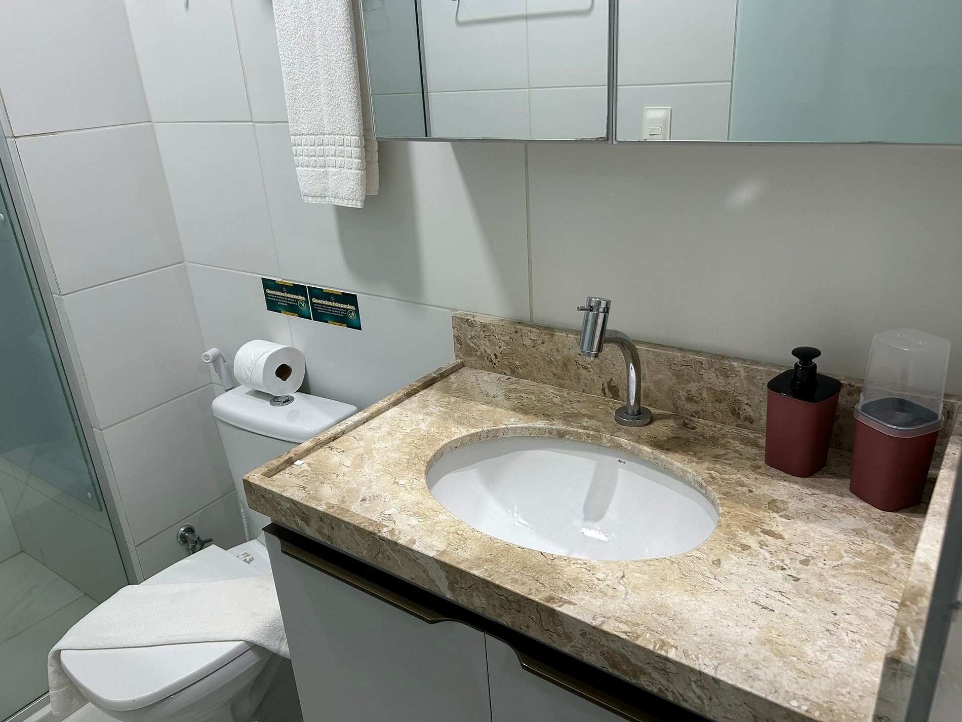 Em localização privilegiada a poucos passos da praia de Tambaú, o lindo flat tem cozinha compacta equipada com geladeira, microondas, sanduicheira, liquidificador, cooktop duas bocas, panelas , louças e talheres.