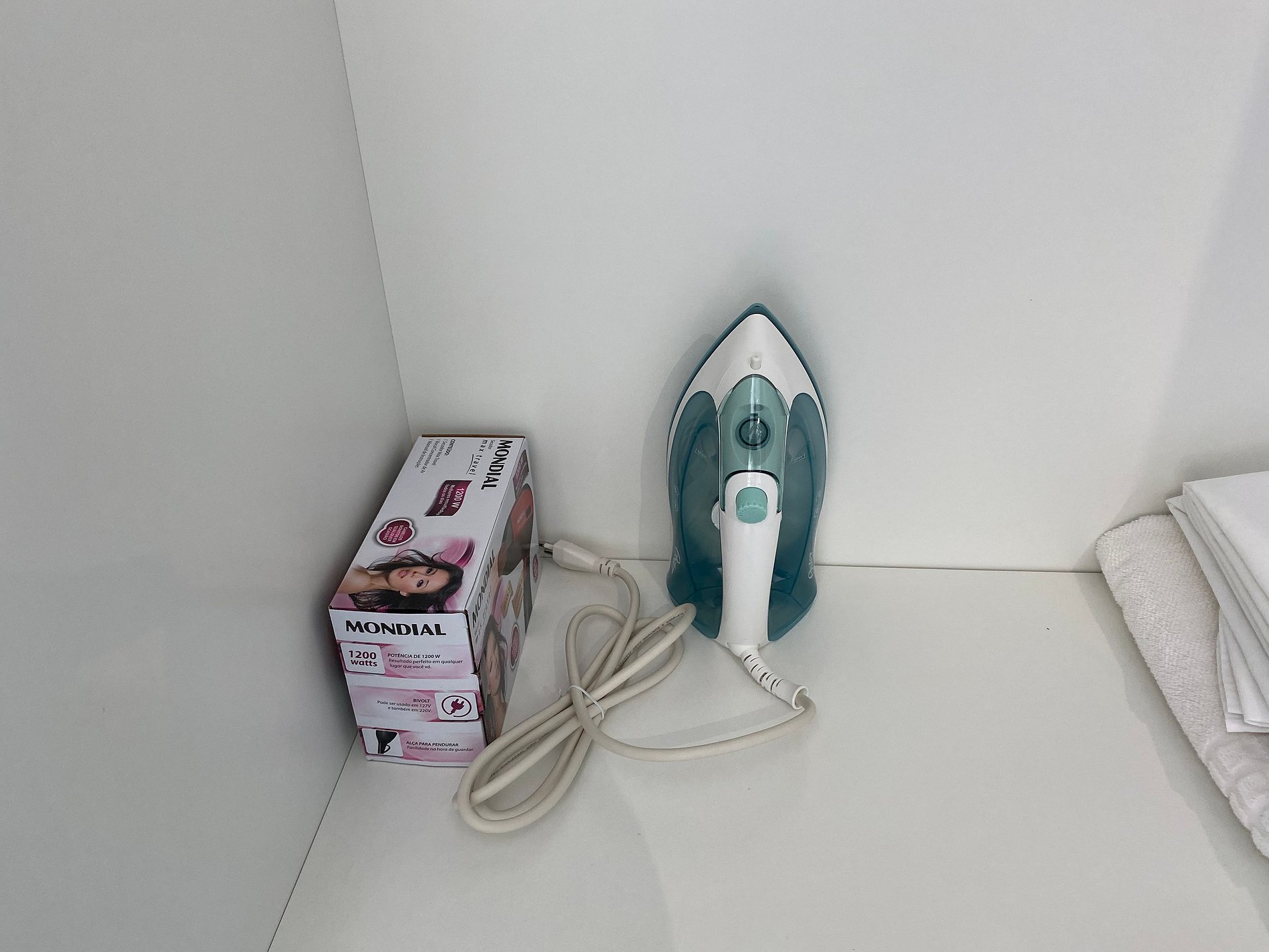 Contém ainda ferro elétrico e cortina acionada por controle remoto.
